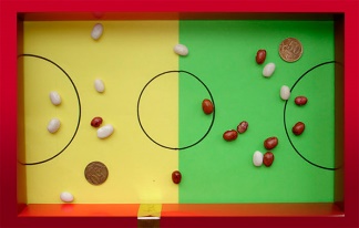 Если в игре участвуют двое игроков, сделайте два комплекта игры. Игроки могут соревноваться между собой, стараясь достичь наименьшего счета. Кто-то третий может доставать фигурки из мешочков для игроков. Или же пусть игроки достают фигурки для противника.