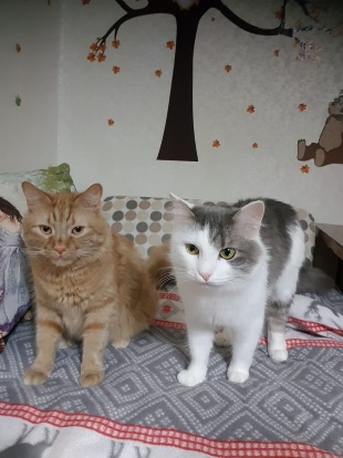 У меня есть два кота. Их зовут Яша и Боня. Они очень смешные и игривые. Бело серый он любит быть один, рыжий рычит, когда, что-то ему не нравится. Едят они с одной миски, Боня всегда спит возле нее, чтобы съесть побольше. (Мелибаев Диёр)