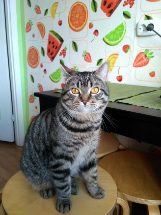 Это наш кот Луи, ему 10 месяцев. Он обожает печеньки, кексы и другие вкусняшки. Любит сидеть на подоконнике и следить за птицами на деревьях. (Кулешов Артём)