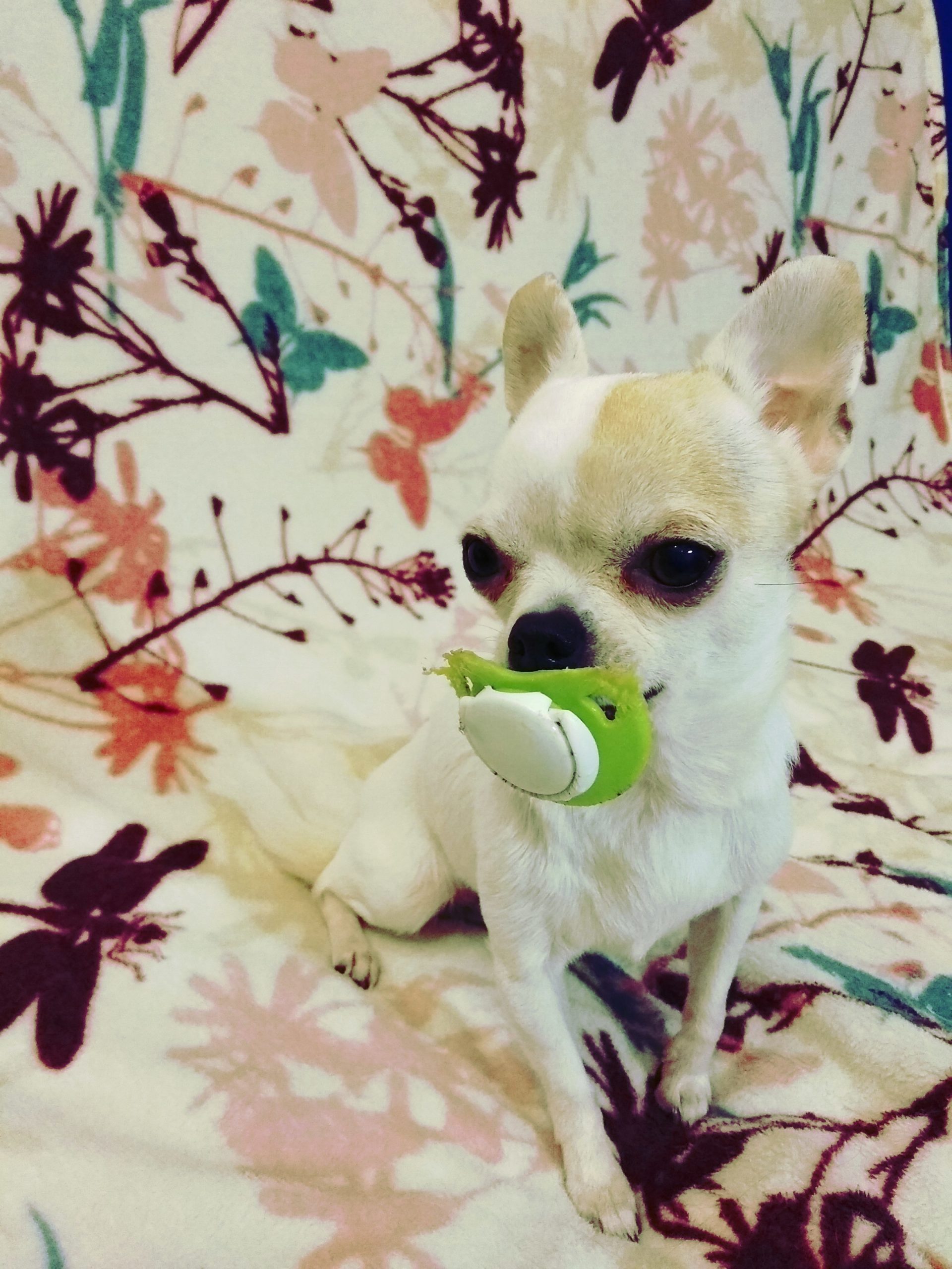 Нюша, 5 лет, Чихуахуа. Она очень добрая, любит людей, активная , ей нравится приносить хозяйке игрушки. Нюша особенна тем, что умеет играть в прятки, (ищет либо своих хозяев, либо игрушки). Так же ей очень нравится детская пустышка (почему? не знаю), но она больше всего её привлекает. (Настя Сократова)