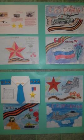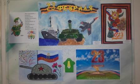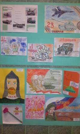 Дню Защитника Отечества посвящена выставка творческих работ учащихся, выполненных под руководством учителя ИЗО О.А.Аверьянова.