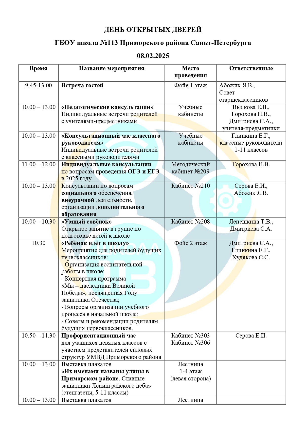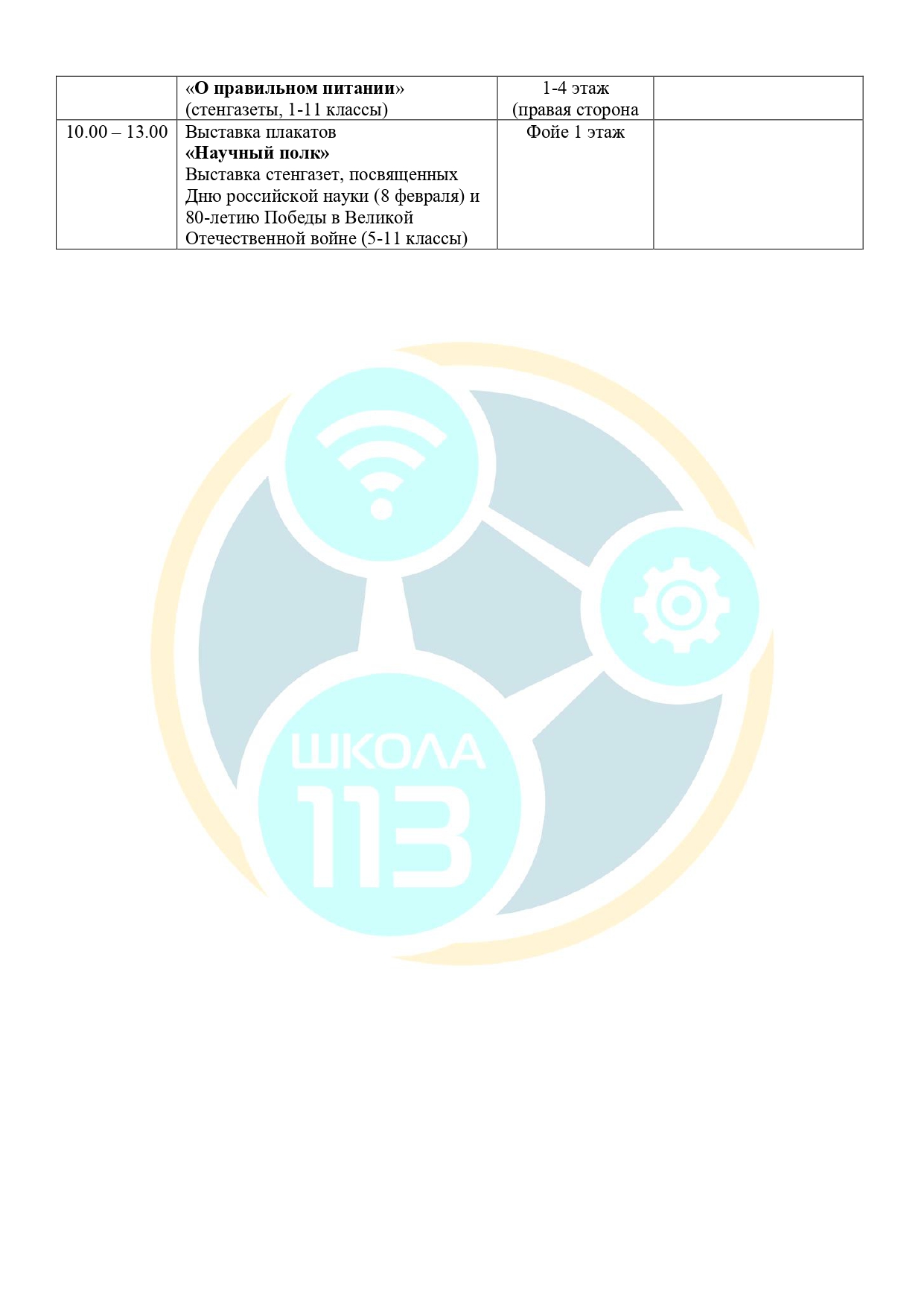 ГБОУ школа №113 приглашает на день открытых дверей! Планом мероприятий общегородского дня открытых дверей