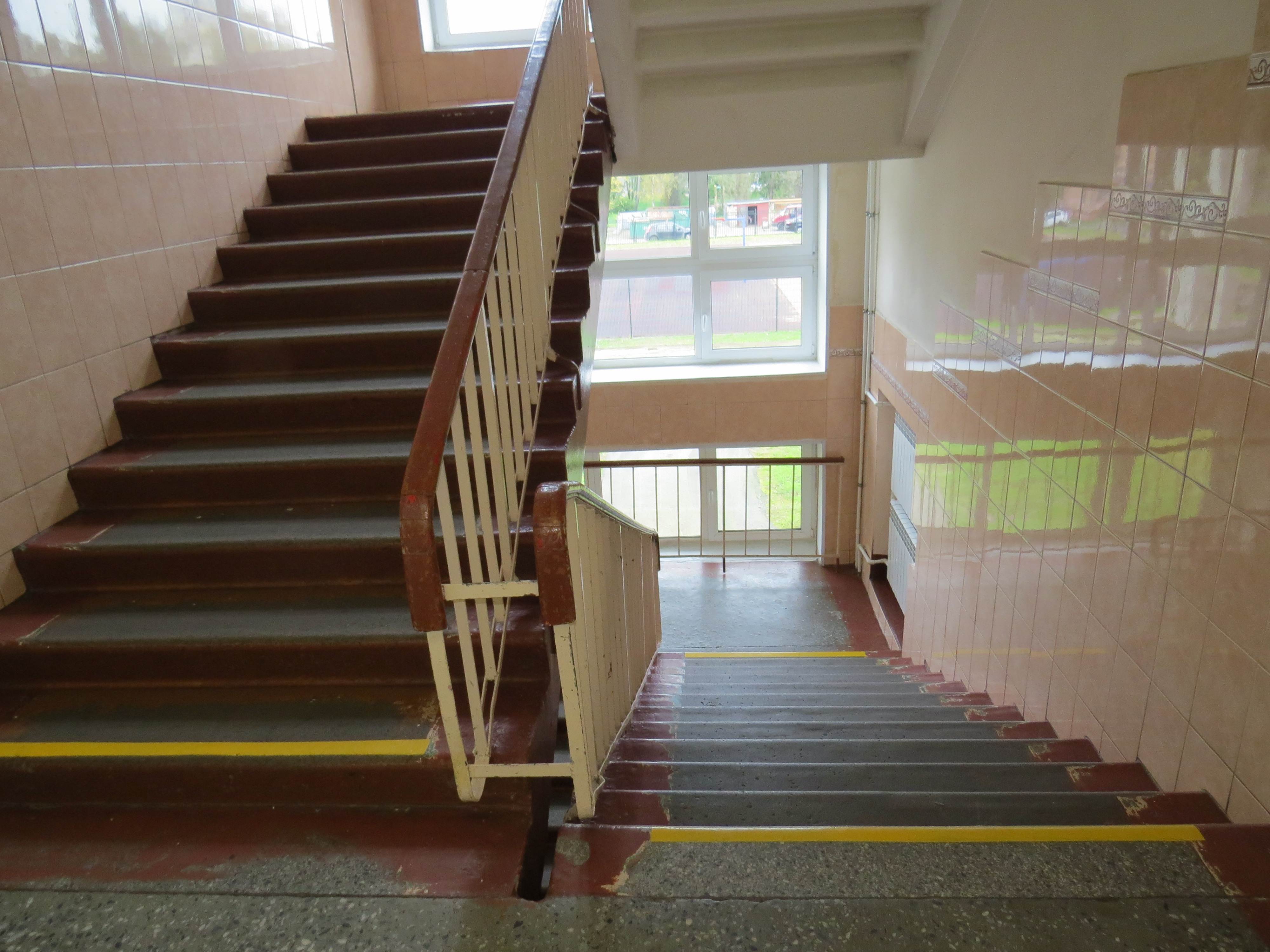 Для инвалидов с нарушениями зрения предусмотрены тактильные предупреждающие указатели и на марше внутренних лестниц.